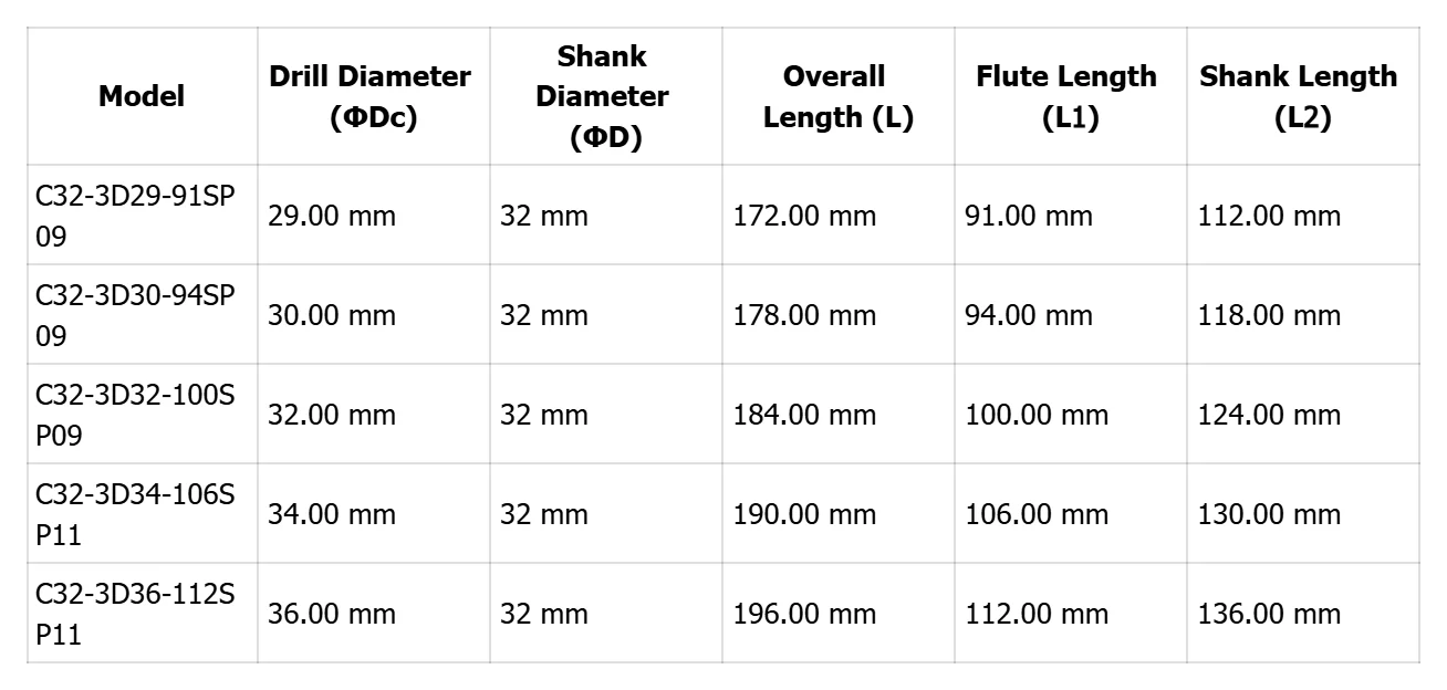 - Efficiency: Internal coolant improves chip evacuation and cutting performance